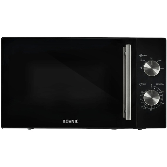 Kuchenka mikrofalowa KOENIC KMW 1221 B posiada szklany talerz obrotowy o średnicy 25,5 cm, ogranicznik drzwi po lewej stronie oraz możliwość łatwego rozmrażania mrożonek o wadze maksymalnie 2 kg. Pojemność kuchenki mikrofalowej wynosi 20 litrów. Timer urządzenia możesz ustawić na maksymalnie 35 minut. Urządzenie sterowane jest mechanicznie. Antypoślizgowe nóżki zapewniają również bezpieczne ustawienie kuchenki mikrofalowej.